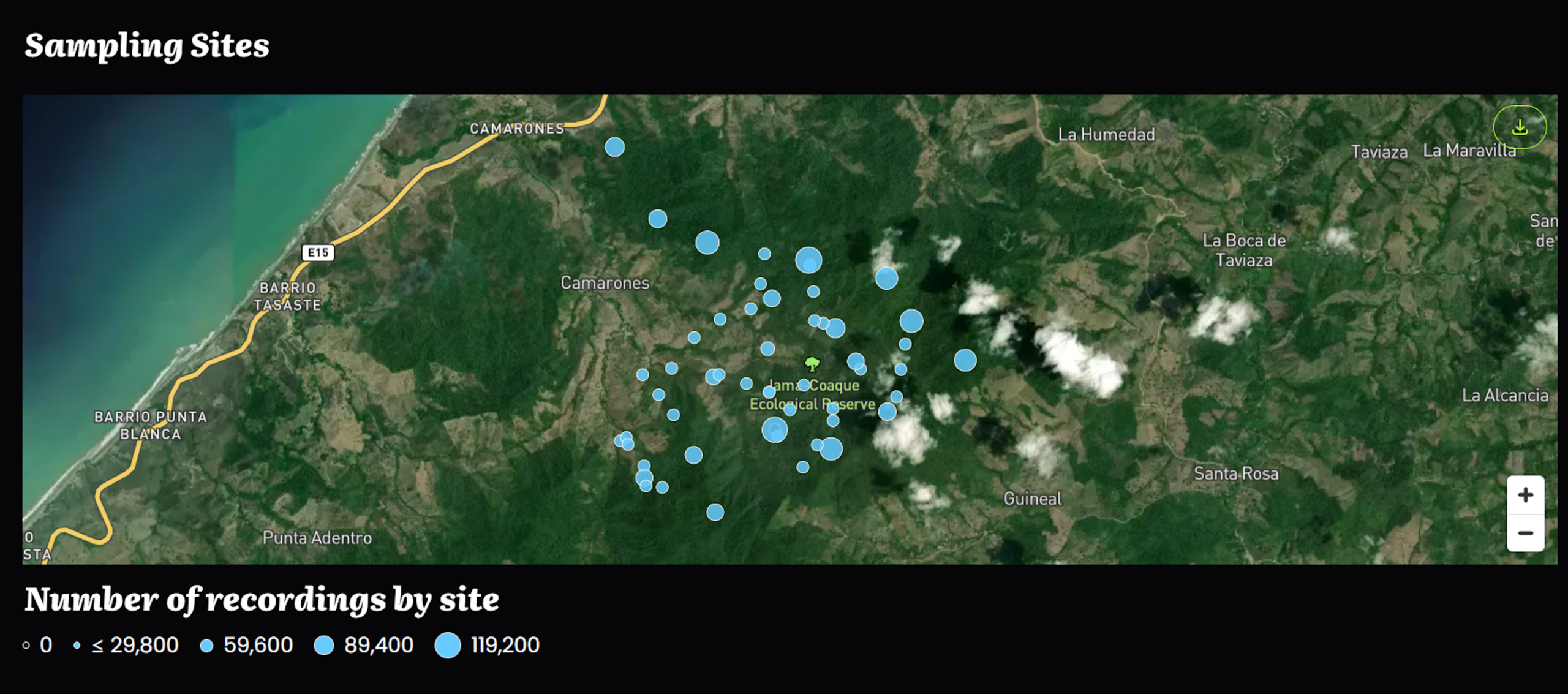 Beginning in 2020, TMA and our partners built an automated monitoring program using AudioMoths (programmable acoustic recorders) to understand which species live in and around protected areas like the Jama-Coaque Reserve and Cerro Pata de Pájaro, and how they respond to different land uses across the wider landscape.
